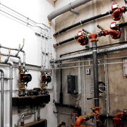 Einbau der Heizungs- und Klimaanlage im Zuge der Sanierung des Hotels.